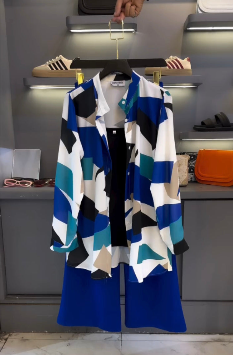 👖 Wide-leg pants – Flowing silhouette in solid royal blue, perfect for casual or elevated looks